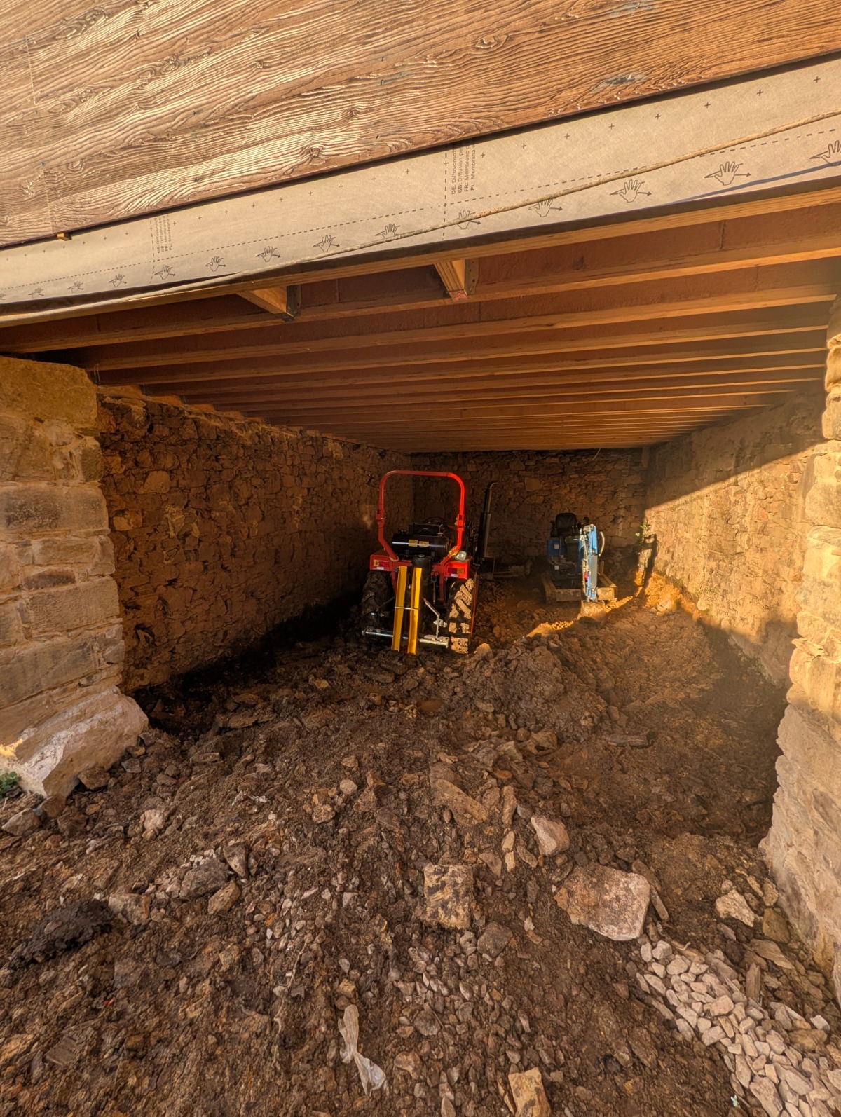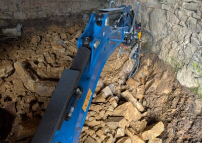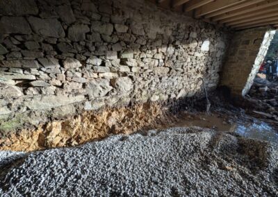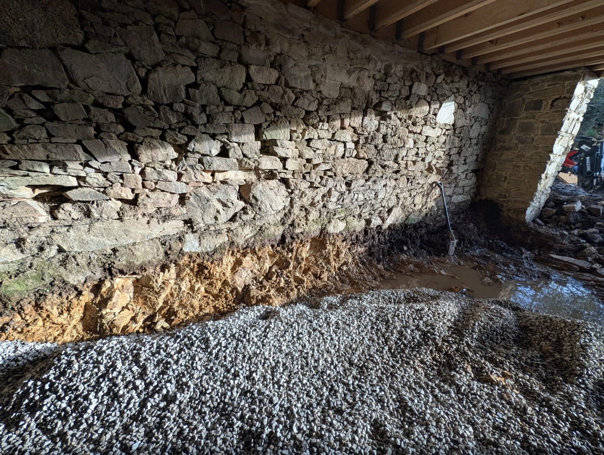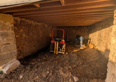 1. The Dig Out First, we carefully excavate the old earth floor. We have to be gentle here—digging too deep too fast can unsettle the foundations, so it’s often done by hand or with small machinery. This has to be done very carefully, with a clear understanding of what you are removing.